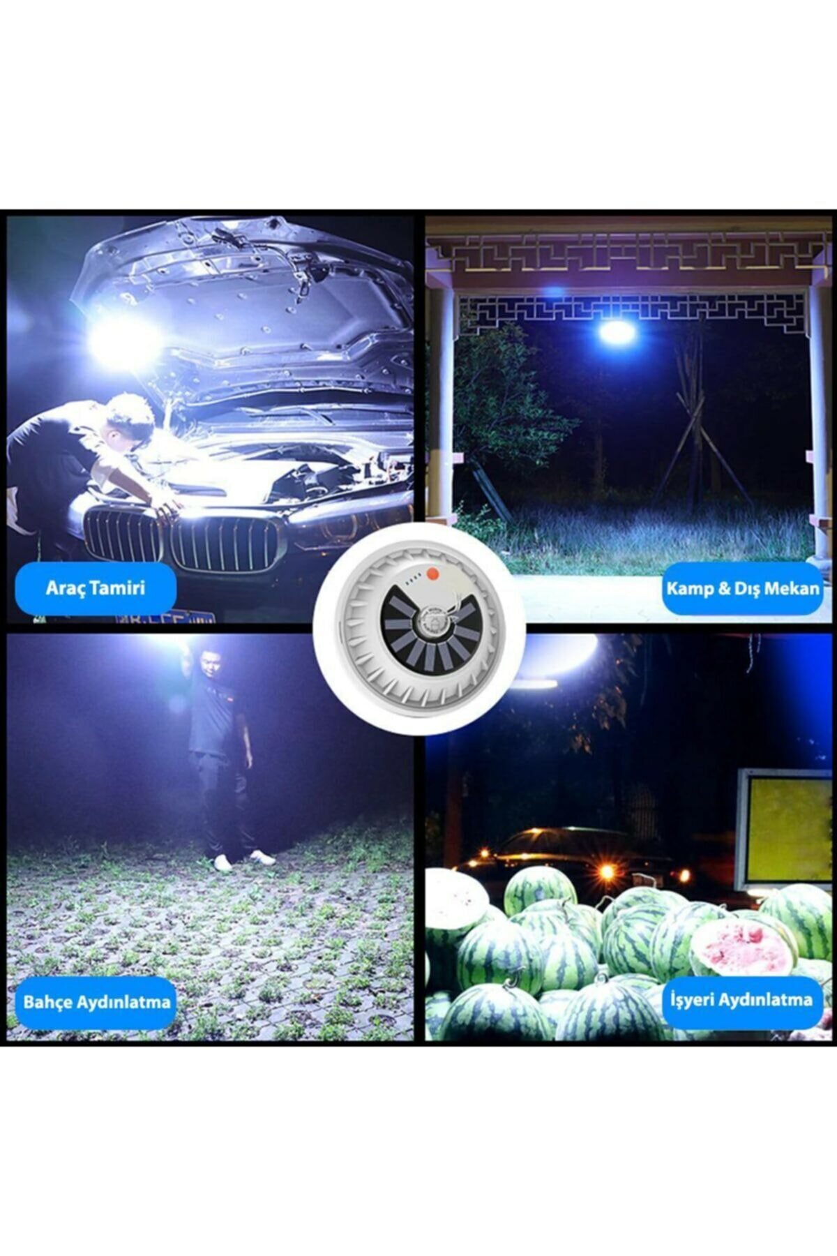 <p>Solar Güneş Enerji Ve Usb Sarjlı Kumandalı Bahçe Aydınlatma Led Askılı Pratik Kamp Lamba</p><p><br></p><p>Solar Güneş Enerjisi ve Usb ile şarj olma özelliklerine Sahip Kumandalı Farklı modlarda çalışan askılı Pratik taşınabilir bir Lambadır. </p><p>Ürünün üzerinde bulunan askı ile Ürünü hemen her yerde kullanabilirsiniz.</p><p> Kumandalı olma özelliğiyle ürünün fonsiyonlarını farklı modlarını uzaktan kontrol edebilirsiniz. </p><p>Acil durumlarda hemen heryerde aydınlatma imkanı sunar. </p><p>Yüksek parlaklıkta LED lamba, verimli, enerji tasarrufu sağlayan, güvenli, kararlı ve uzun ömürlü ışık kaynağı olarak kullanılır. </p><p>Enerji tasarruflu ve çevre dostu şarj edilebilir lityum pilin su geçirmez ve toz geçirmez tasarımlıdır.</p><p> Ürün, taşıması kolay ve her yere asılabilen bir kancaya sahiptir.</p><p><br></p><p><b><u>Teknik Özellikler;</u></b></p><ul><li>Ürün Boyutu: düz çap 14CM kalınlık 5.5CM</li><li>Lamba boncuk tipi: SMD lambası</li><li>Lamba: 30 SMD</li><li>Ma: 2400mAh dahili 2 lityum pil</li><li>Malzeme: ABS + PPBeyaz renk</li><li>Şarj Yöntemi: Güneş enerjisi/USB Doğrudan şarjGeçiş </li><li>Modu: düğme anahtarı</li><li>Aydınlatma Süresi: 3-5 saat</li><li>4 Farklı Modda Çalışma Özelliği</li></ul><p><br></p><p>Paket İçeriği;</p><ul><li>1 Adet Solar Güneş Enerji Ve Usb Sarjlı Kumandalı Bahçe Aydınlatma Led Askılı Pratik Kamp Lamba</li></ul>